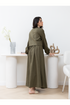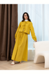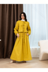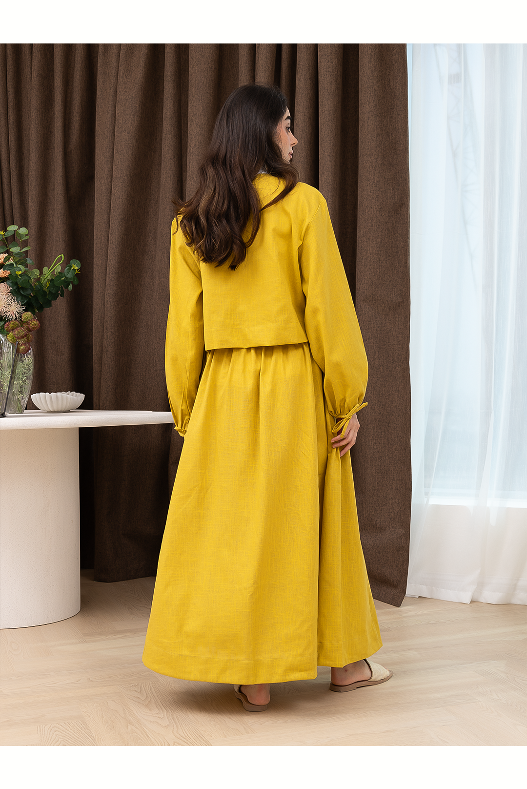 A refined linen set featuring a top and skirt, thoughtfully designed to complement a modest and elegant style.