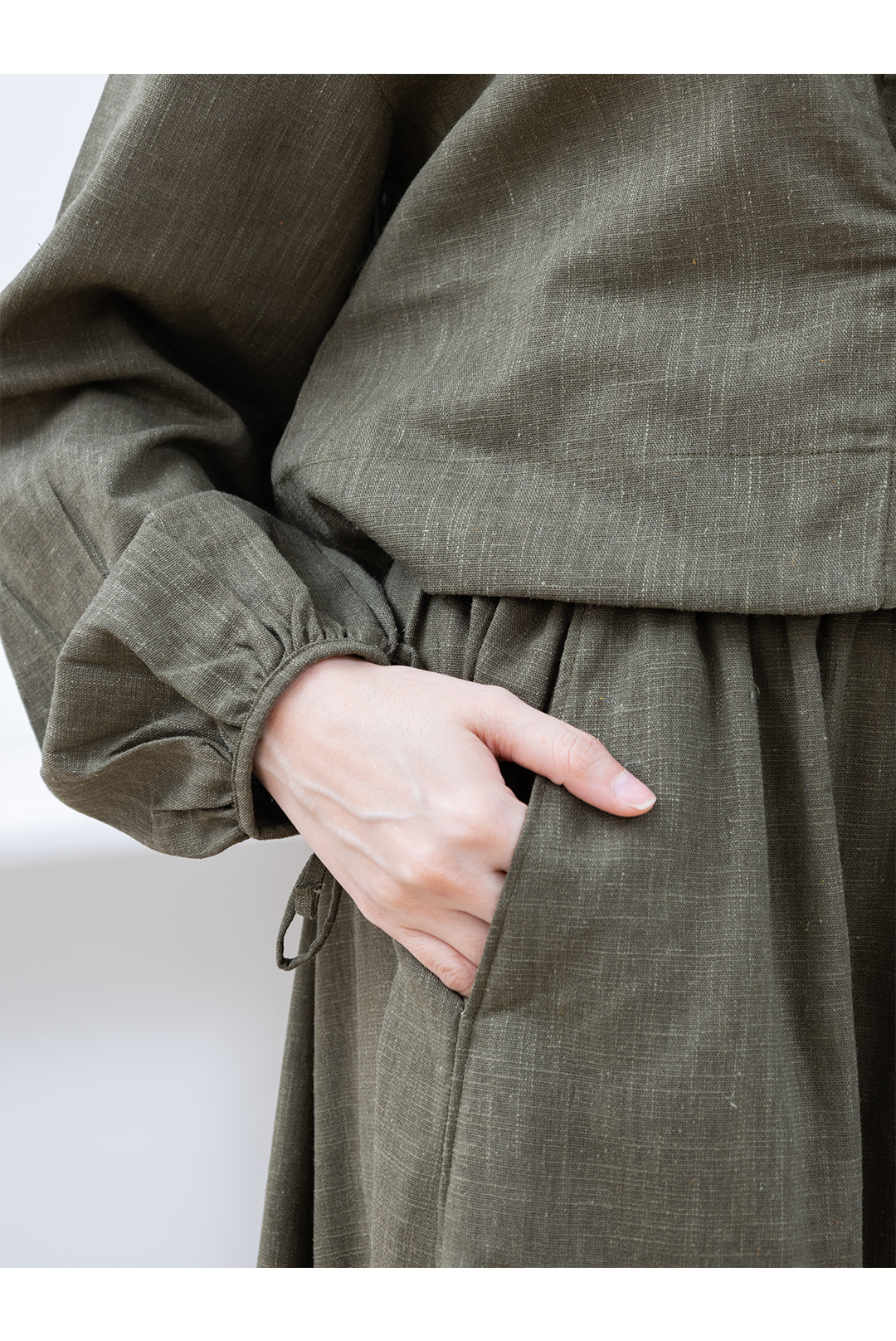 Crafted from lightweight, non-sheer linen fabric, this set is perfect for both formal outings and graceful everyday wear.