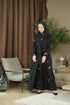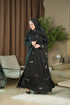 Twilight Spark Abaya crafted from luxurious silk with a flowing kloosh design, paired with a delicately embroidered chiffon scarf that captures the beauty of twilight in every detail.
